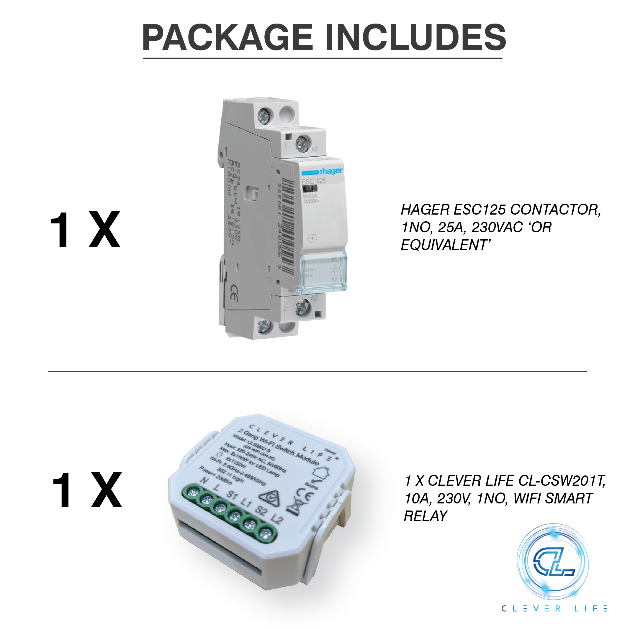 1 x 230V AC Contactor, 25A, 1 NO contact (Hagar ESC125 or equivilant)